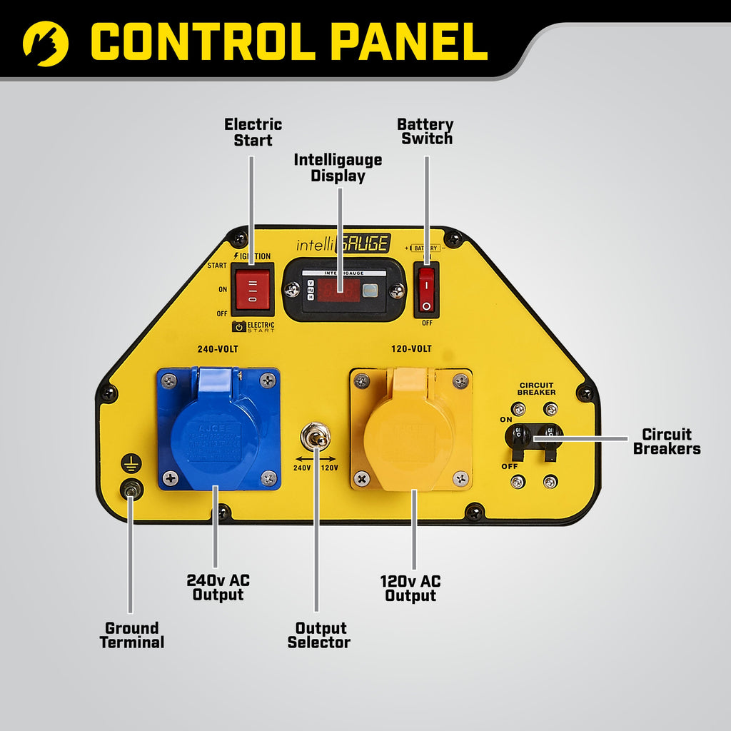 Running for up to 8 hours at 50% load on petrol, or for a whole 19 hours on a 19kg bottle of propane, this 23-litre fuel tank unit is designed for a long life. And with a low fuel smart shut-off and 3 in 1 Intelli Volt Meter, maintenance is made easy.