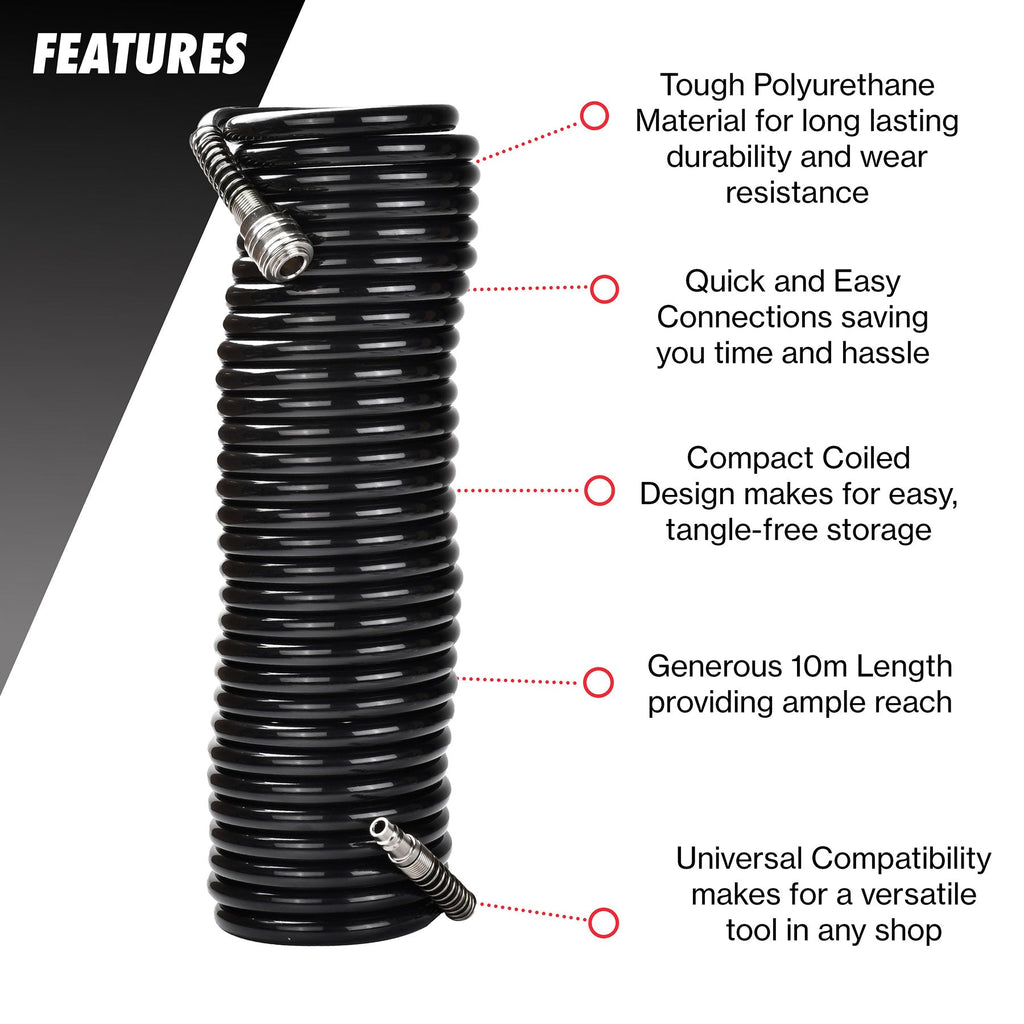 10m Coiled PU Air Hose – Durable, Flexible & Easy to Use.