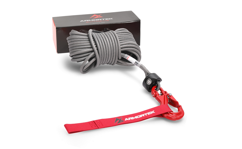 The Armortek Extreme Synthetic Winch Rope Kit is designed for peak performance and durability in the toughest conditions.  These winch lines have a double braided construction consisting of an inner 12 strand ‘core’ rope with a tightly woven outer shield.