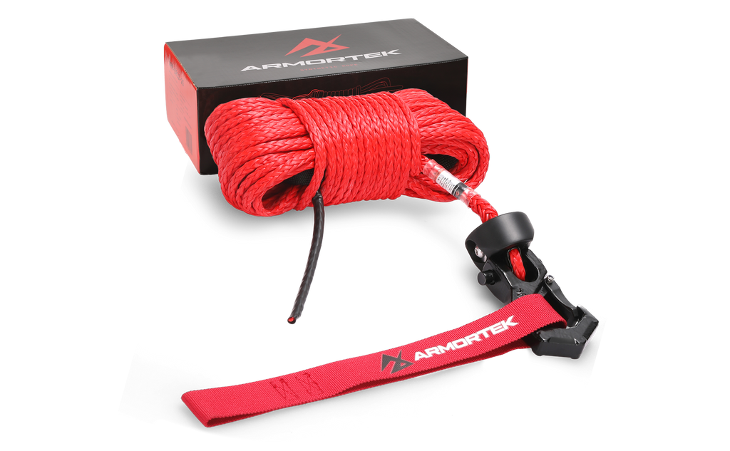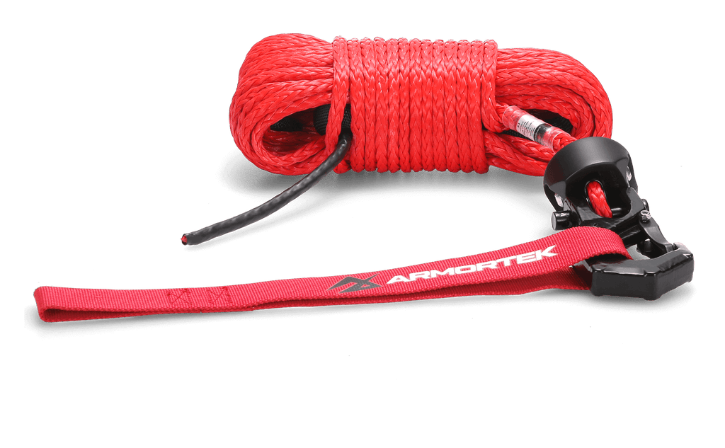 Armortek Synthetic Winch Rope is made with HMPE, a fiber stronger than hardened steel. It undergoes a unique pre-stretching process and is coated with special Armortek abrasion resistant coating for ultimate endurance.