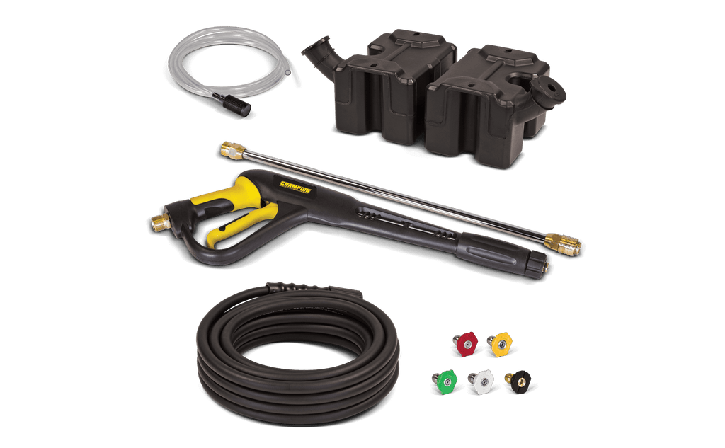 Featuring five different nozzles including 0°, 15°, 25°, 40° and soap, you can get the perfect weapon to tackle any job. Using two handy onboard 1.9L detergent tanks, you can also clean quickly and easily without the need to constantly refill your detergent stock. The perfect, hassle-free solution for cleaning patios, decks, outdoor furniture, farm equipment and more, this Champion pressure washer can be used domestically or industrially.