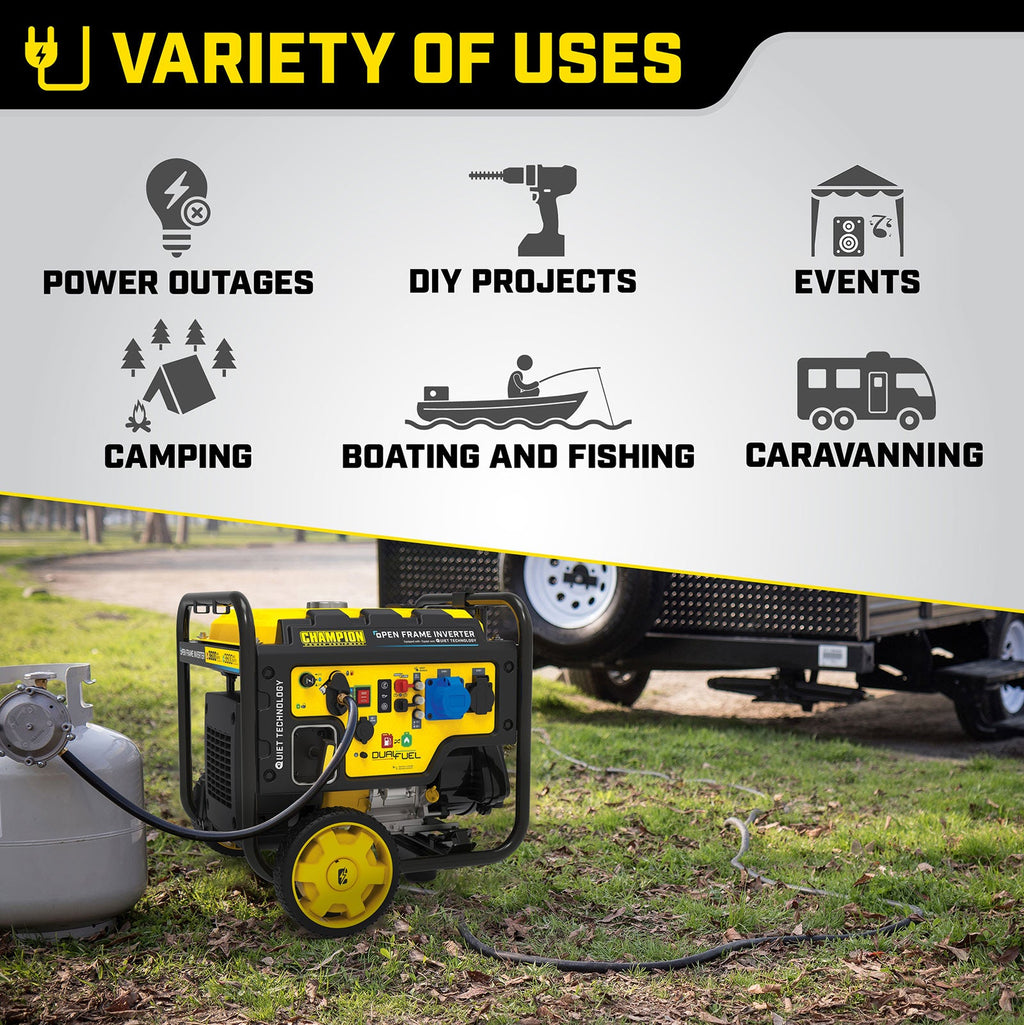 Quieter, smaller and lighter than traditional generators – the Champion Digital Hybrid inverter is now available in Duel Fuel for even smarter running.