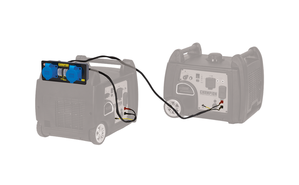 Newly designed 32 amp parallel kit allows any UK or EU Champion Inverter models 1000-3600 watts new or old to be connected in parallel to create an increase in power up to 95% of the combined running watts. Included is a IP54 27.2 amp control box complete with 2 x 32 amp 3 pin industrial water proof sockets, connection leads and 2 universal adapters to allow old or new models to easily connected. With a dual clip design it will allow the control box to hook on to new, old or even a independent piece of equipment securely.