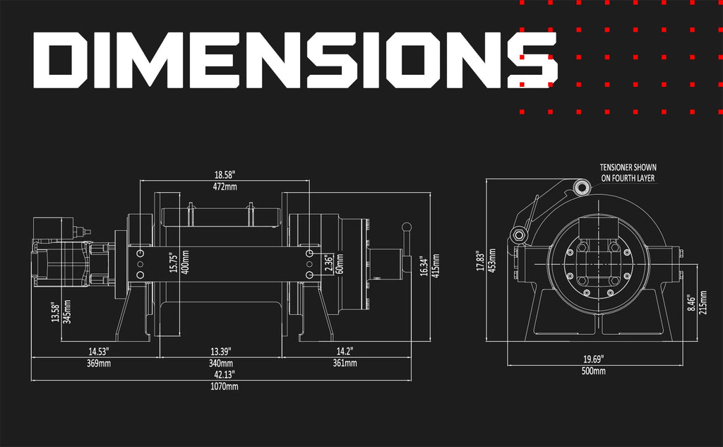 • Reversible Orientation: Allows flexible installation with motor on the left or right and rope spooling from top or bottom, making it adaptable to various mounting configurations.