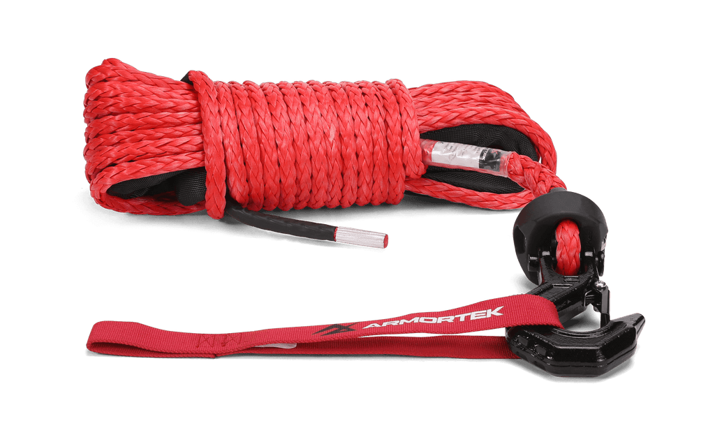 Armortek Synthetic Winch Rope is made with HMPE, a fiber stronger than hardened steel. It undergoes a unique pre-stretching process and is coated with special Armortek abrasion resistant coating for ultimate endurance.