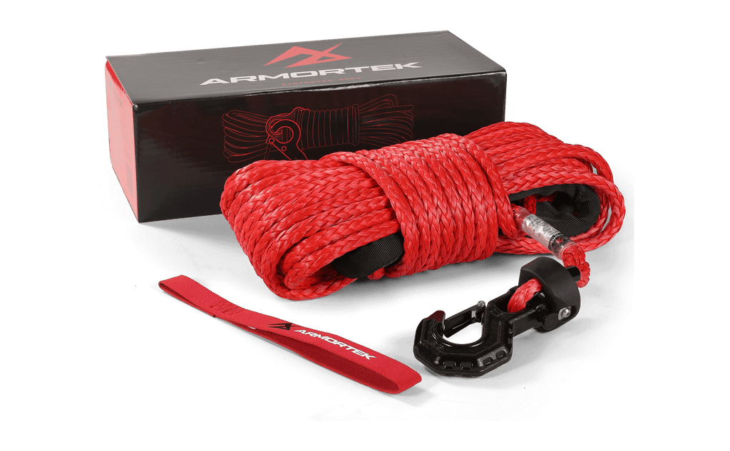 Armortek Synthetic Winch Rope is made with HMPE, a fiber stronger than hardened steel. It undergoes a unique pre-stretching process and is coated with special Armortek abrasion resistant coating for ultimate endurance.