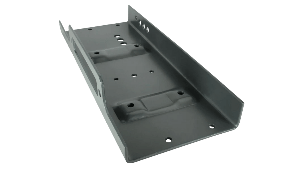 The Universal winch mount plate is ideal for fitting to recovery vehicles and 4x4. It is easily adaptable to suit all your needs and can be used in conjunction with 95% of winches available on the market today including Warrior, Superwinch and Warn. The plate has an all steel construction and is finished in durable dark grey powder coat. The mounting holes for the winch (hole centres 254mm x 114mm) are on pressed, raised sections of the plate so that the winch mounting bolt heads are flush with the underside of the plate so it can easily be bolted or welded down to a flat surface.